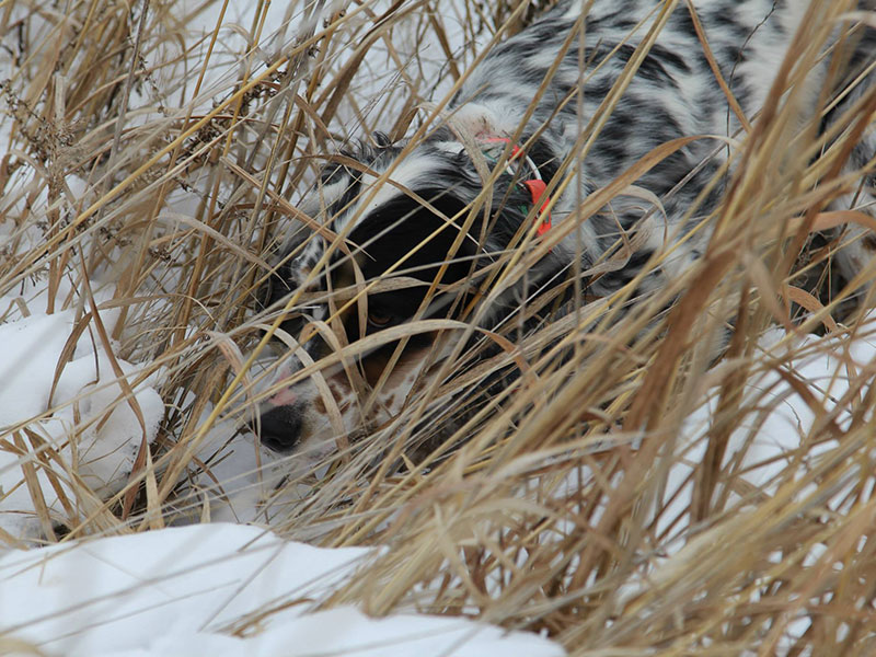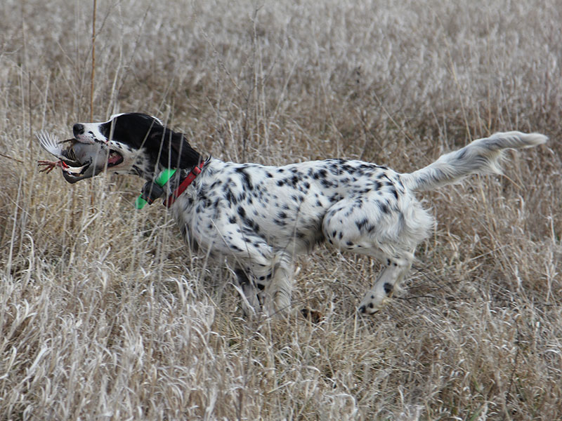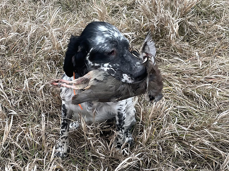 Major is a blue belton and direct son of Sweet Lou. He is 62 lbs and is used for personal hunting and guided client hunts. Major is close working and very willing to please. He is an excellent bird finder and has a beautiful retrieve to hand.